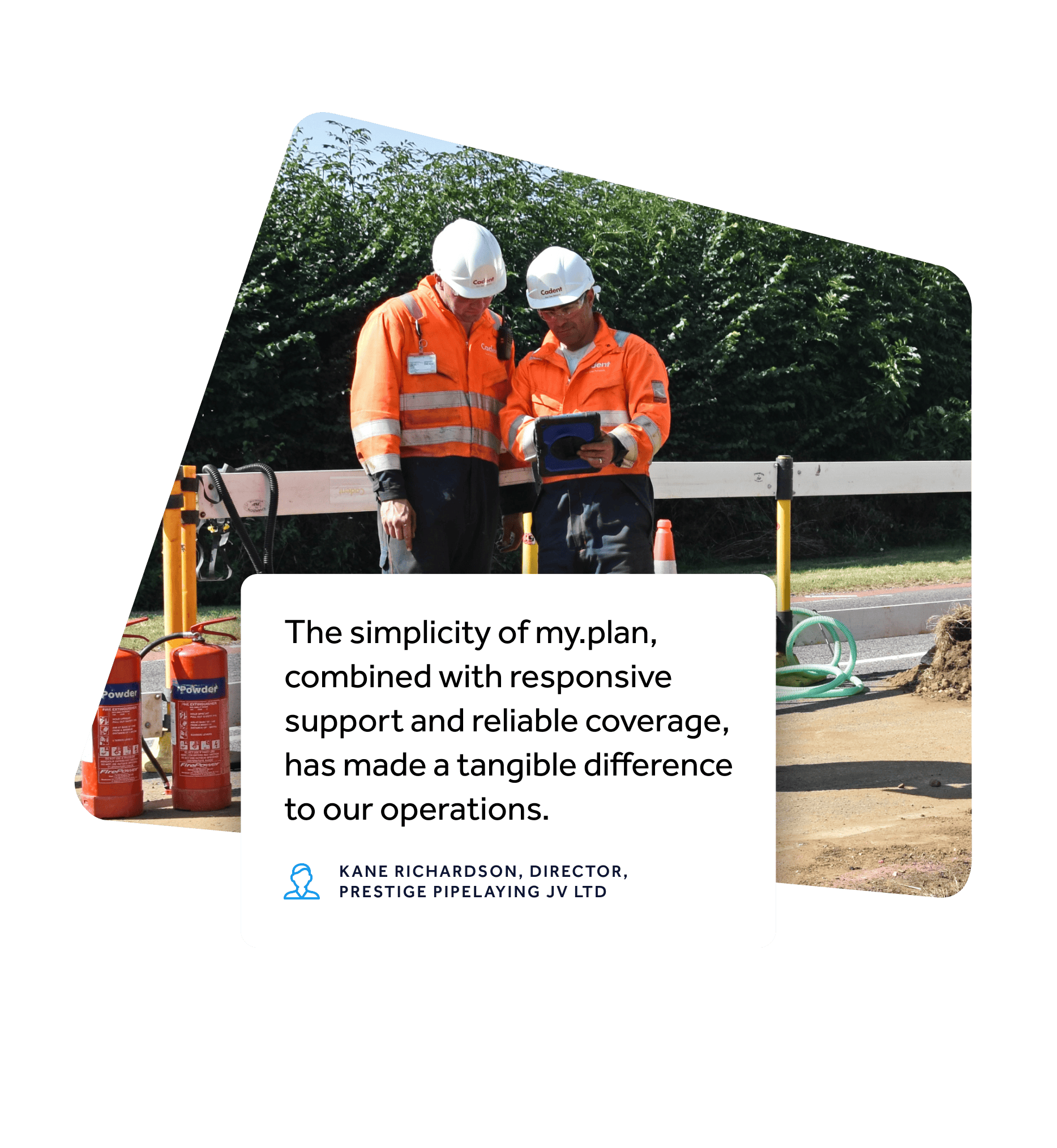 With plan.com and my.plan, Prestige Pipelaying gained full control and visibility all the while eliminating the complexity of managing a large mobile fleet. With my.plan’s real-time monitoring, spend controls and flexible provisioning, the team now enjoys predictable costs, fewer administrative burdens and improved efficiency across the business. Reliable coverage and responsive support keep field operations running smoothly, allowing the business to stay focused on delivering projects safely, on time, and within budget.”